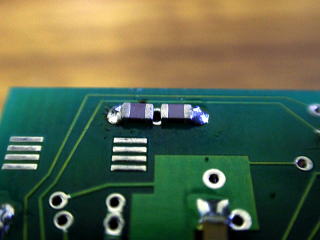 (古い基板(Ver1.00)の場合はクリスタルに変更する場合はクリスタルを浮かしてはんだ付けして、抵抗などと接触しないようにします。)