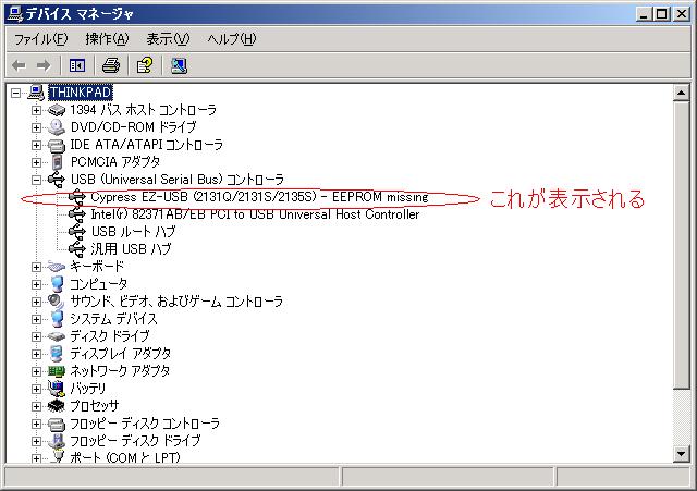 コントロールパネルのデバイスマネージャに"Cypress EZ-USB........."が表示されればOKです。