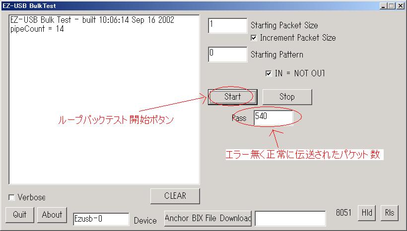 このテストにより、EZ-USBのCPUを含めた動作確認ができます。